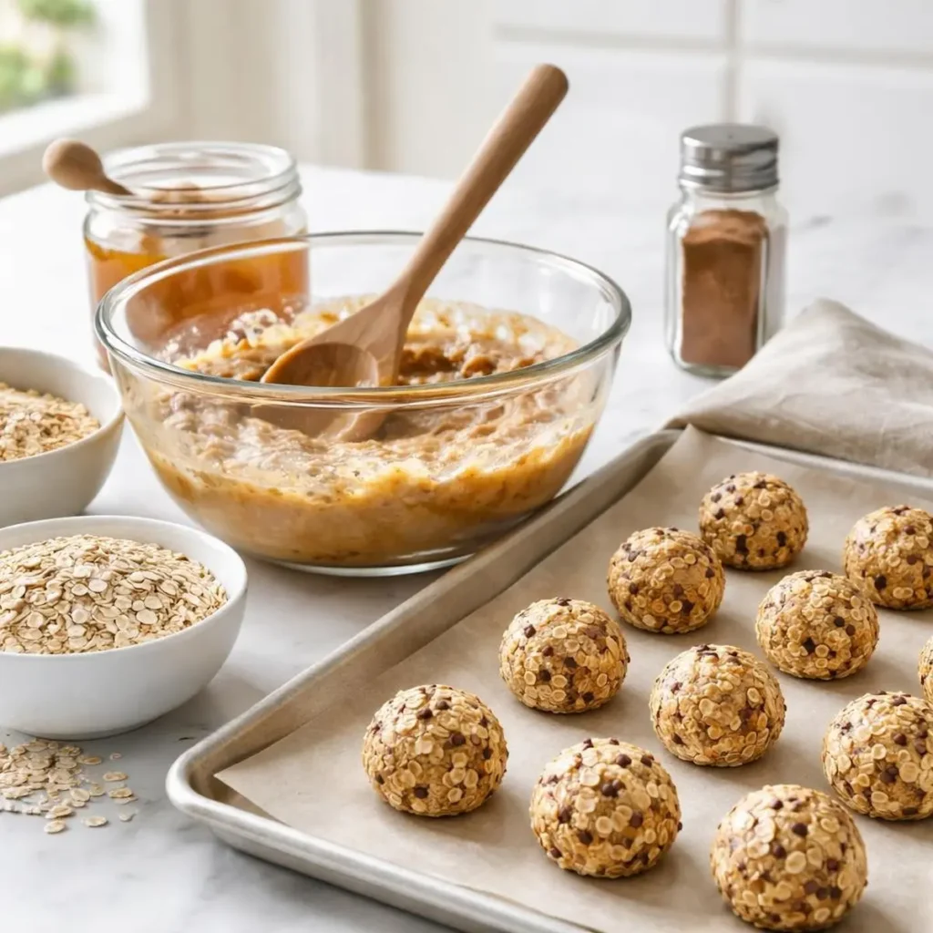 - Stir in the oats to form a thick, shapeable dough.