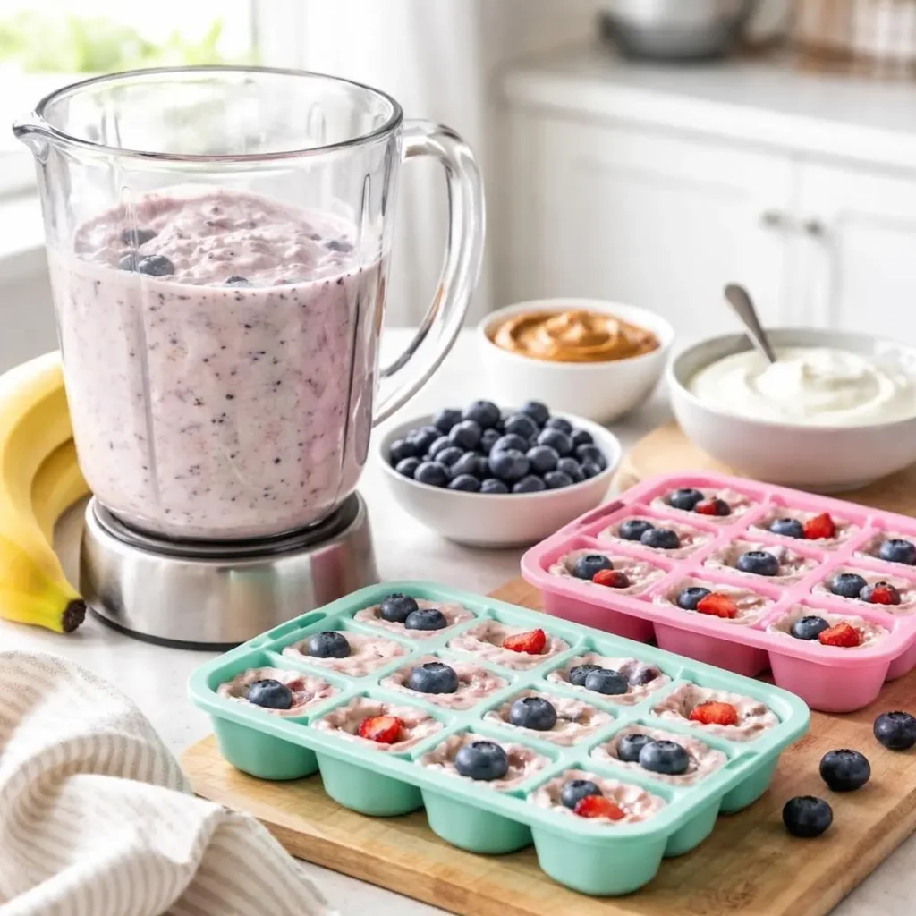- Pour the mixture into silicone molds or ice cube trays.