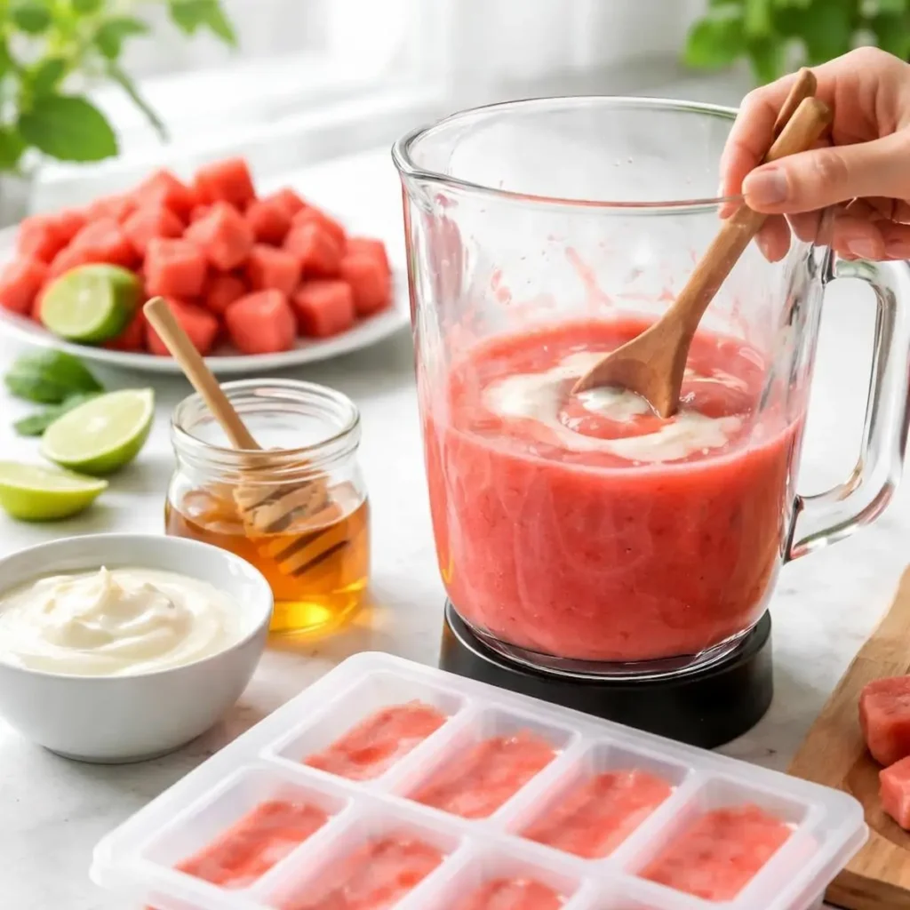 - Remove all seeds from the watermelon and blend until smooth.