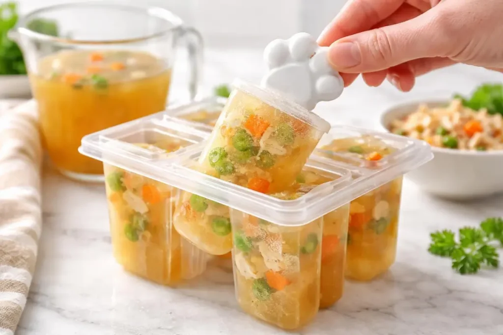 Enter the chicken broth pupsicle — savory, simple, and endlessly customizable. Think of it as a bouillon cube situation, but frozen and delicious.