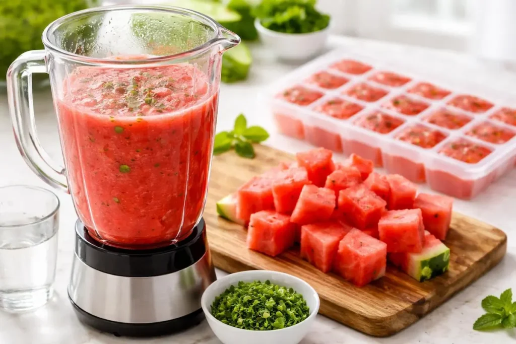 1. Toss the watermelon cubes into a blender and blitz until smooth.