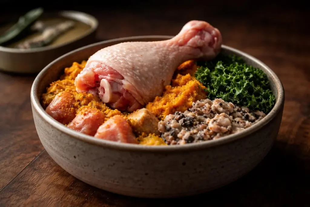 Chicken is the workhorse of raw feeding. It’s cheap, easy to source, and dogs go absolutely berserk for it. Add sardines into the mix and you’ve got a bowl that punches way above its weight in the omega-3 department. Who says budget meals can’t be brilliant?