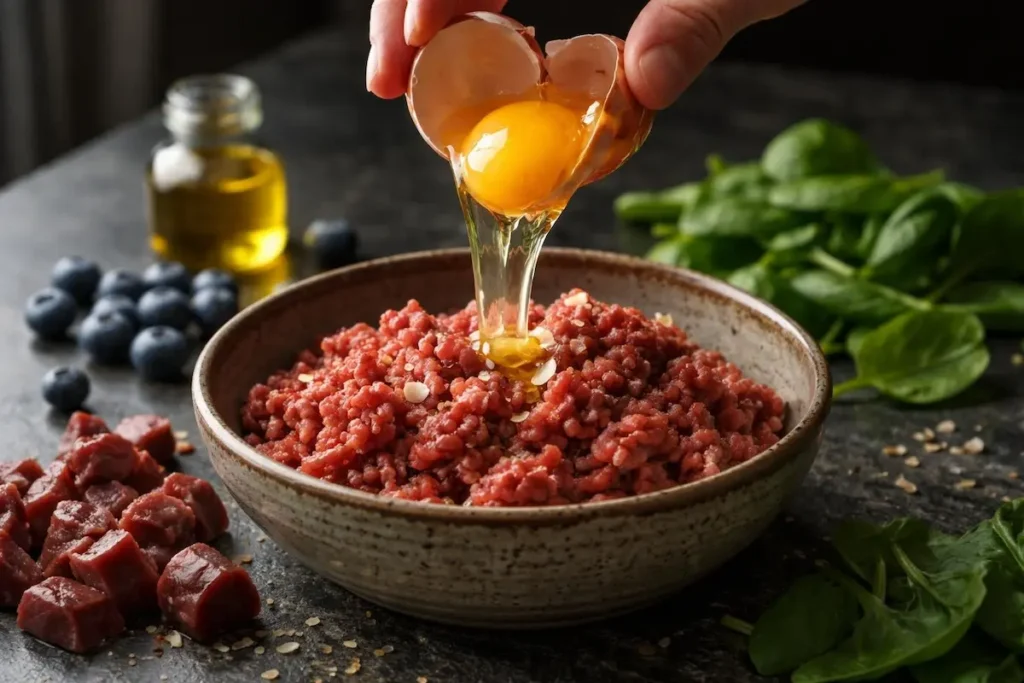 Nobody said raw feeding has to follow rules about when certain proteins are appropriate. Turkey is a lean, gentle protein and combined with eggs, you’ve got a breakfast-vibes bowl that works any time of day. Some people skip eggs entirely, but I think that’s a massive mistake — the yolk alone is a nutritional goldmine.