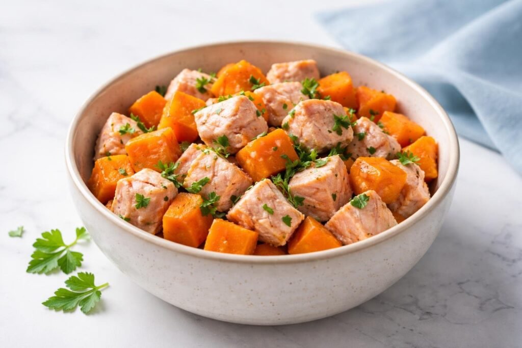 | Salmon & Sweet Potato Omega Bowl | Salmon | Skin & coat health | 30 min |