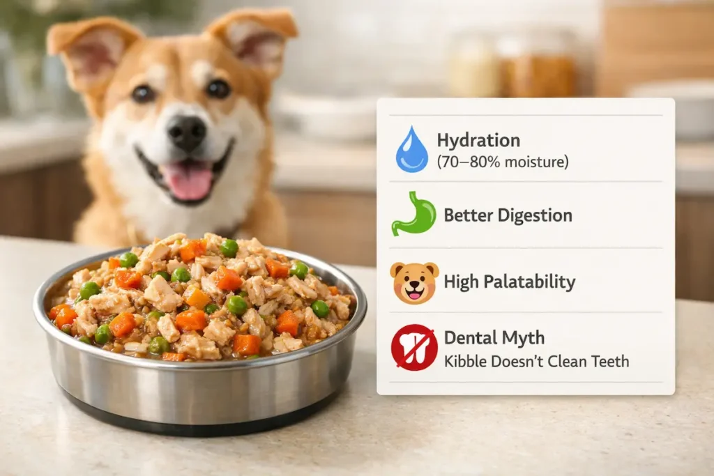Wet food isn’t just a preference — for many dogs it’s genuinely the better nutritional choice. Here’s why: